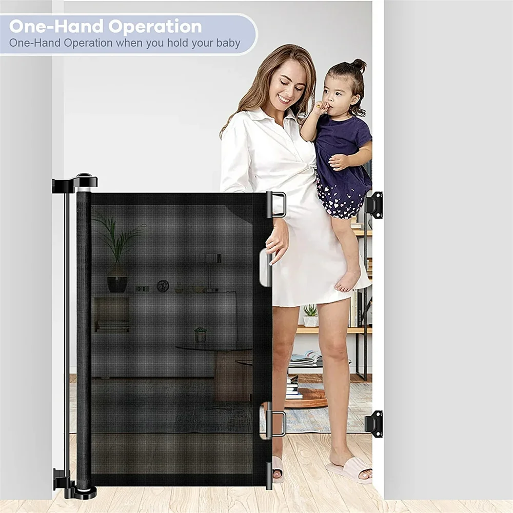 71in Extra Wide Retractable Baby Gate No-Drill Childproof Net Fence 34in Tall Mesh Baby Safety Gate for Stairs Dog Gate Black