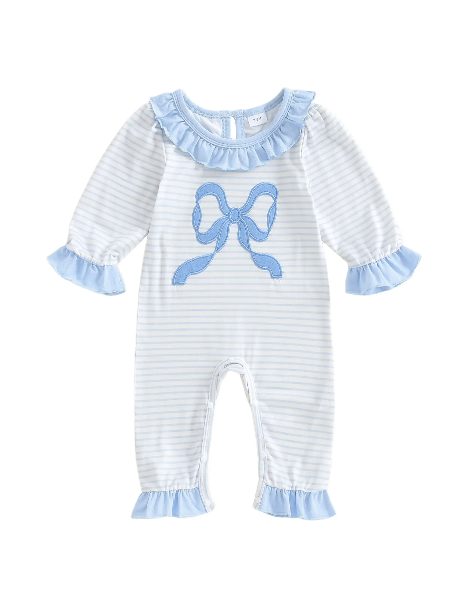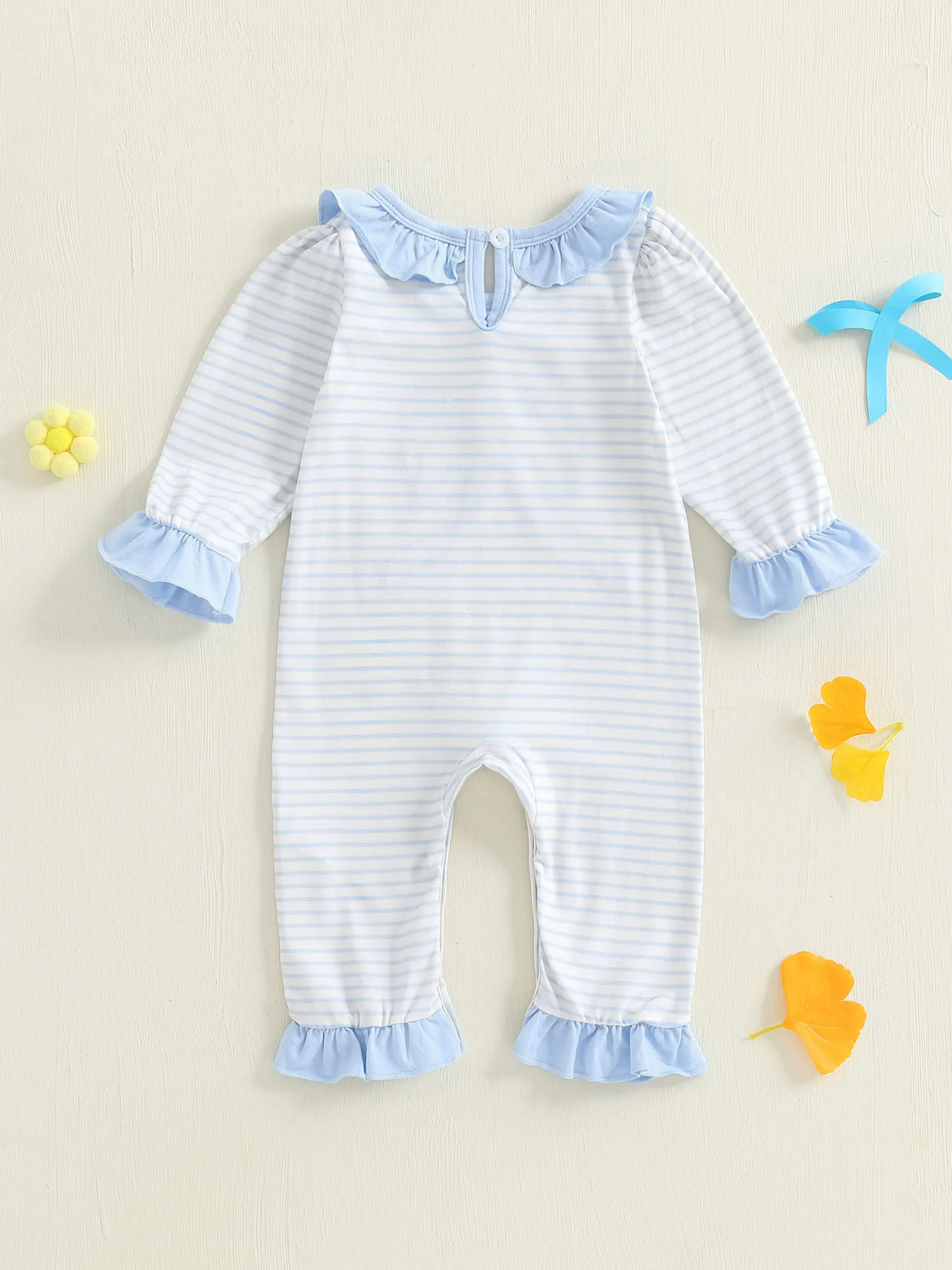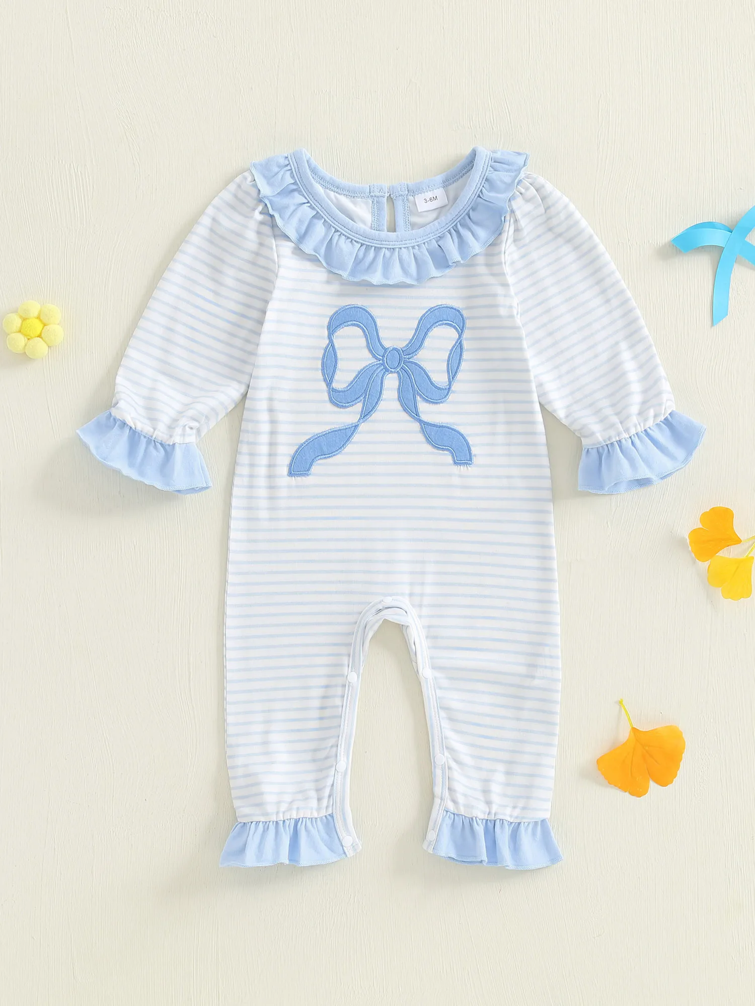Baby Girl Fall Romper Long Sleeve Round Neck Bow Embroidery Ruffle Jumpsuit Infant Pajamas