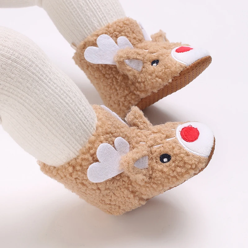 Cute Reindeer Patterned Baby Winter Boots Warm Soft Sole First Walker Shoes for Infants Non-Slip Christmas Footwear