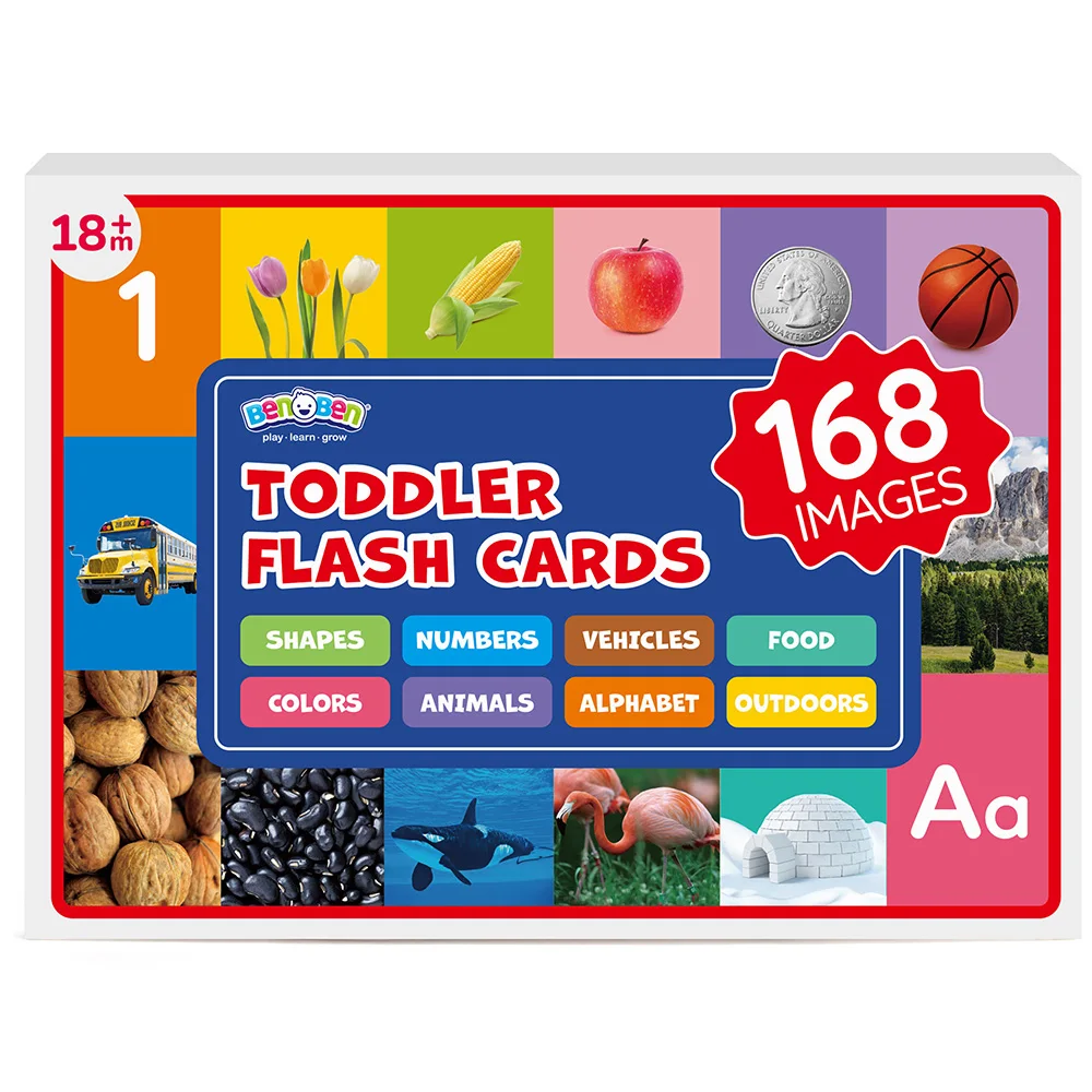 Flash Cards for Toddlers, 84 Double-Sided Educational Flashcards, Alphabet, Number, Objects Learning Cards for Kids