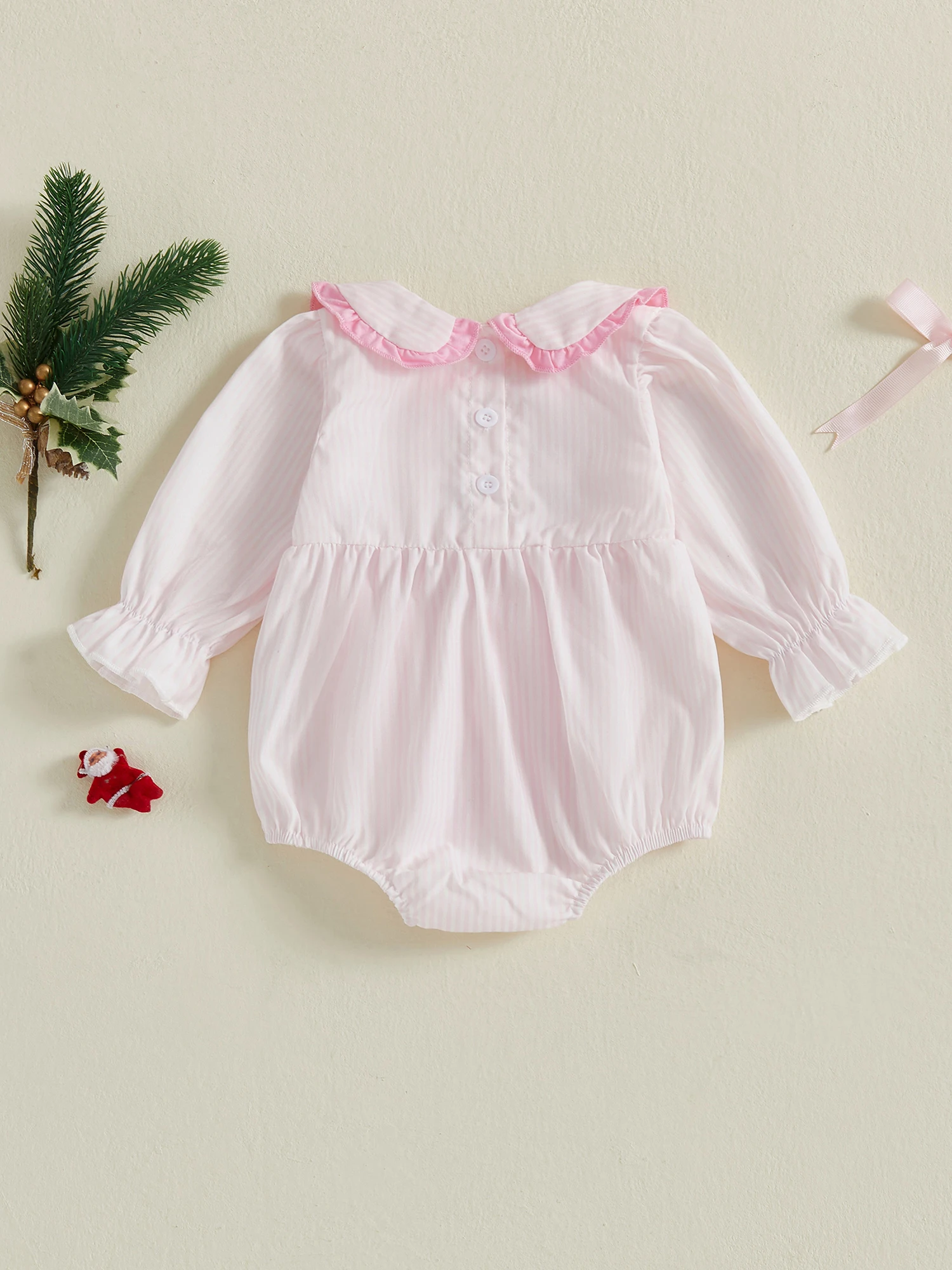 Baby Girl Christmas Bodysuit Long Sleeve Bow Front Stripes Print Romper Newborn Fall Winter Playsuit