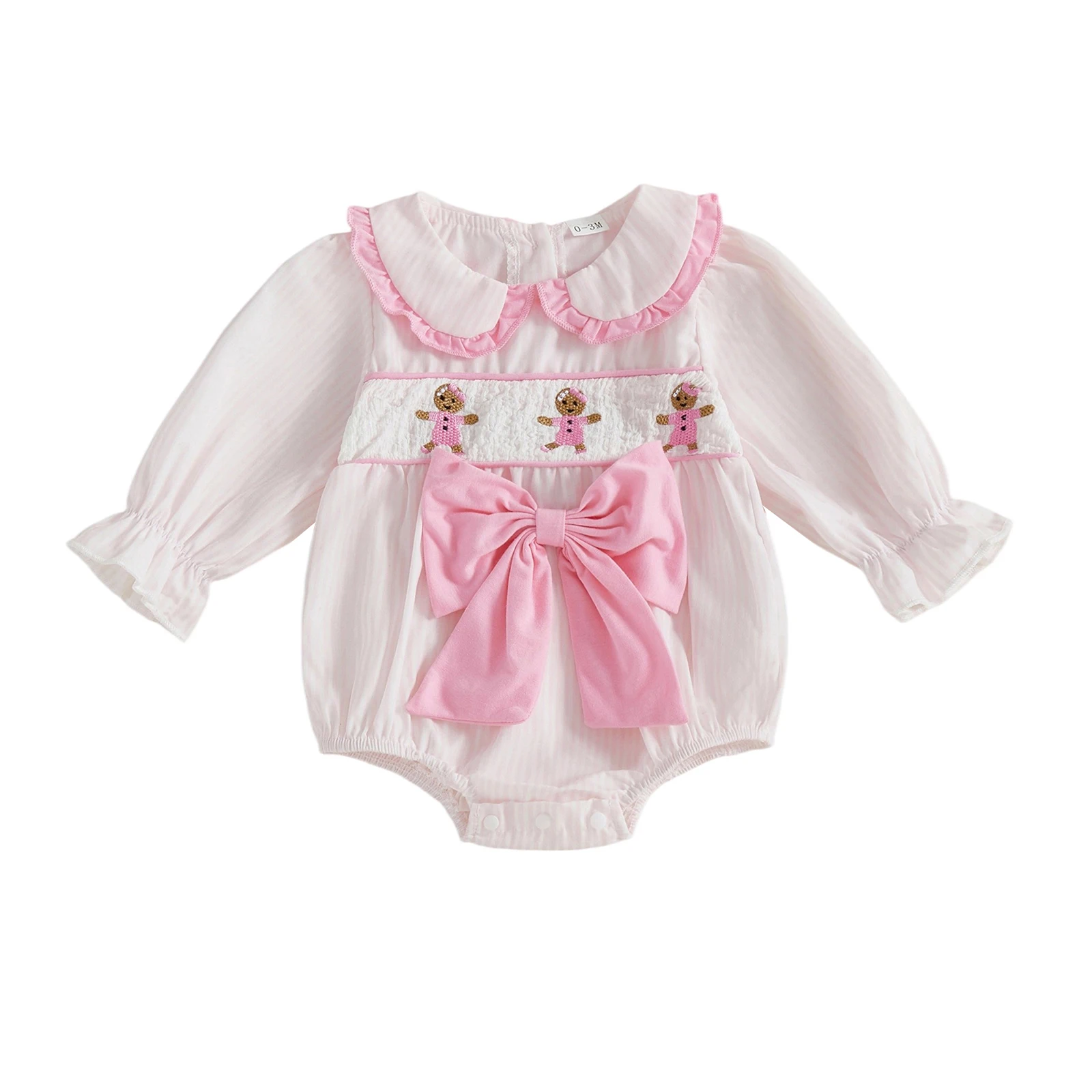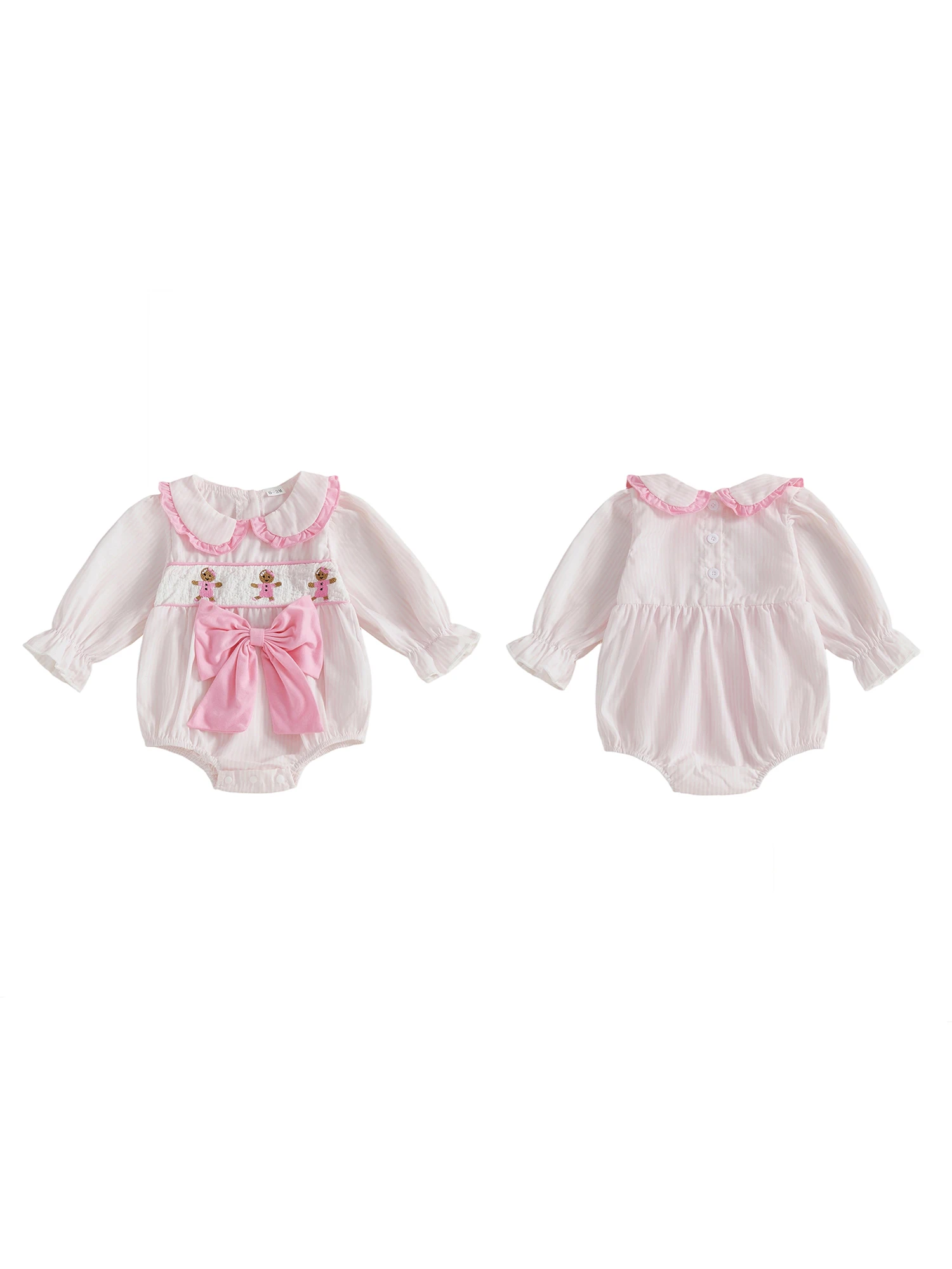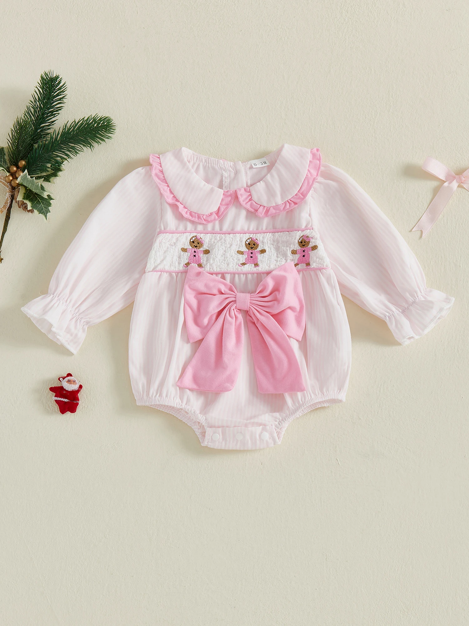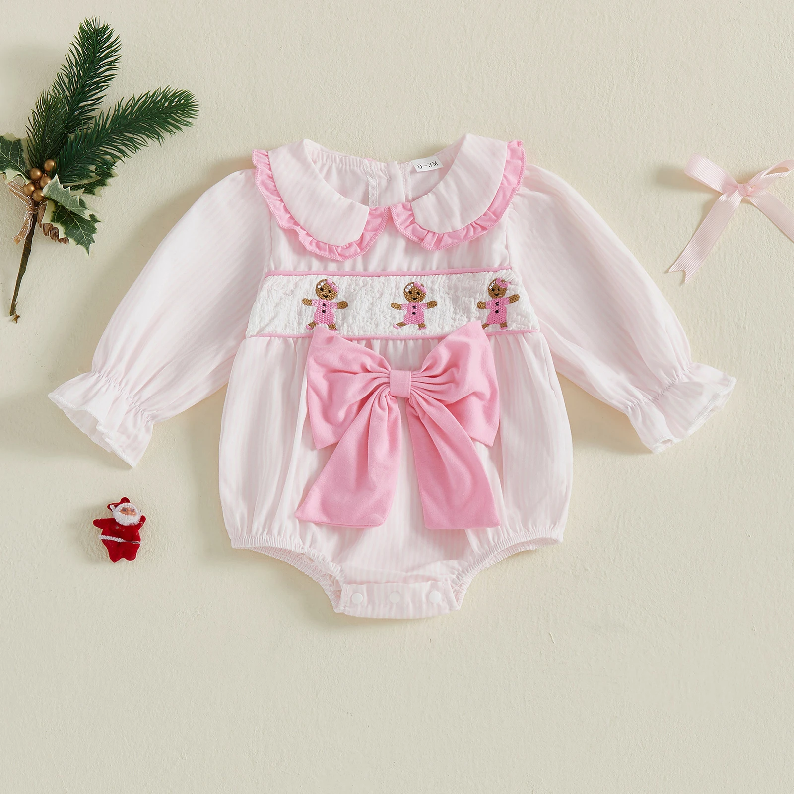Infant Holiday with Festive Bow Detail and Striped Pattern Long Sleeve Jumpsuit for Baby Girls Winter Romper for