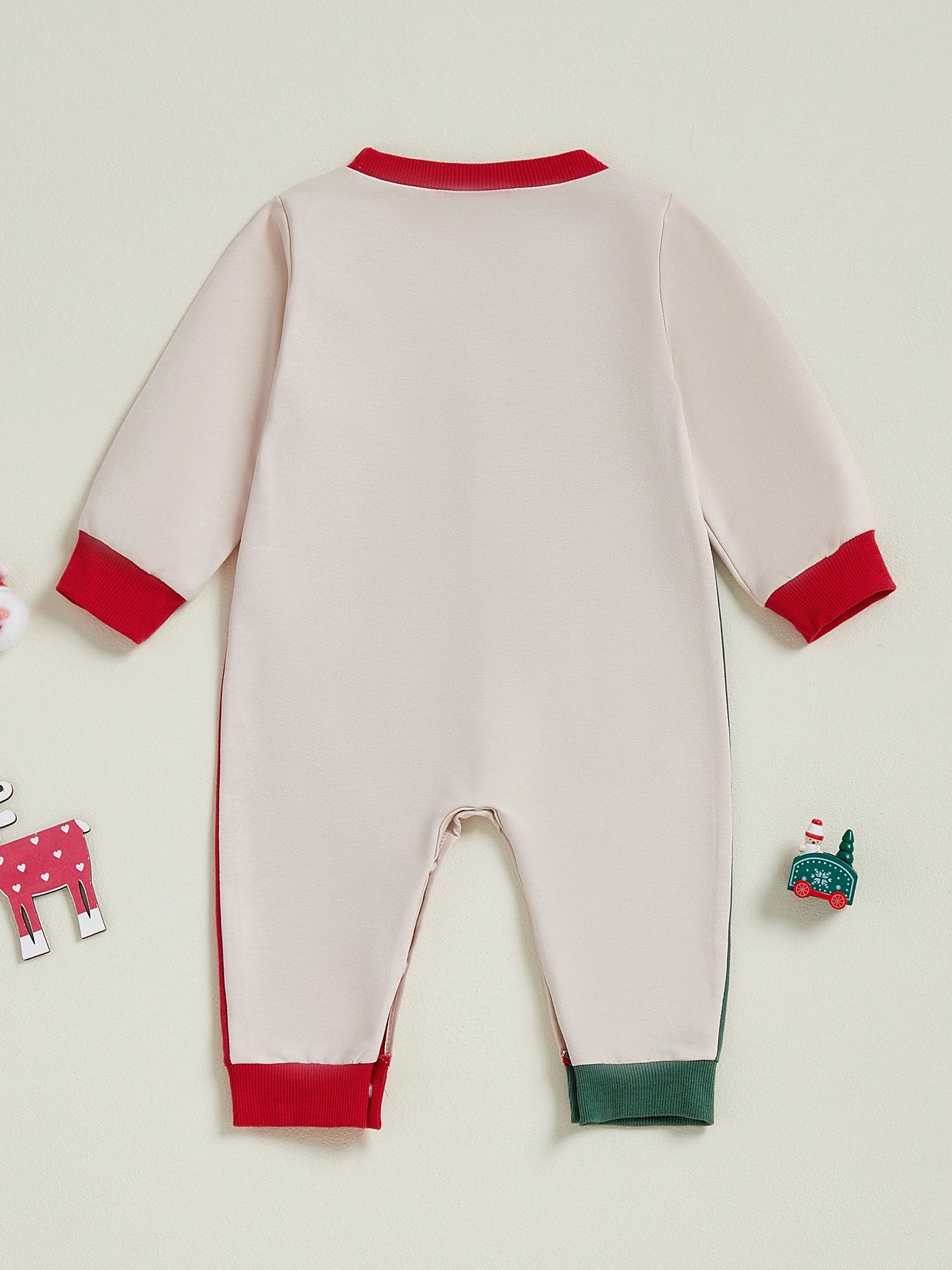 Baby Boy Girl Sweatshirt Romper Contrast Letter Embroidered Crew Neck Long Sleeve Jumpsuit Cute Winter Fall Clothes